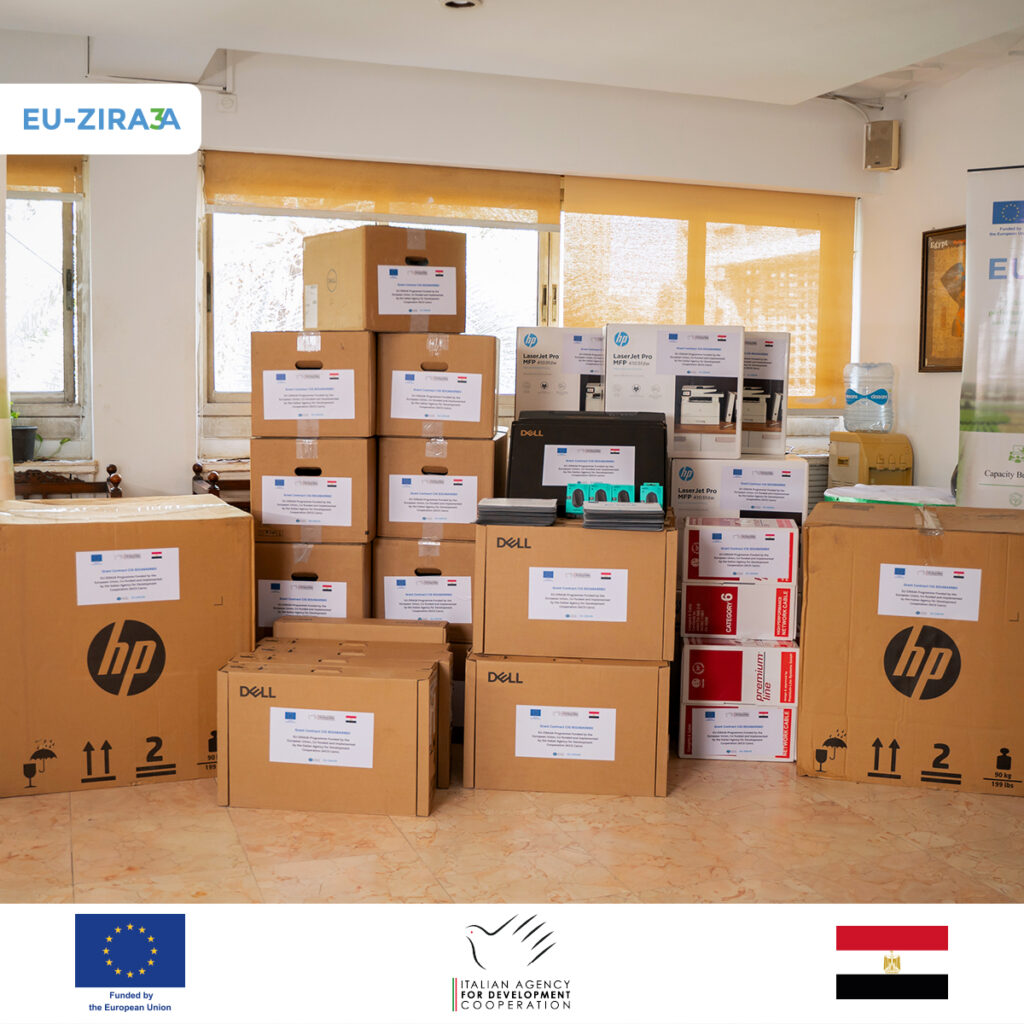 As part of the activities of the EU Integrated Rural Development Programme for Egypt (EU-ZIRA3A), implemented by the Cairo Center for Development Benchmarking (CDB) with funding from the European Union and the Italian Agency for Development Cooperation (AICS), new IT equipment has been delivered to the Foreign Agricultural Relations (FAR) Department at the Ministry of Agriculture and Land Reclamation.