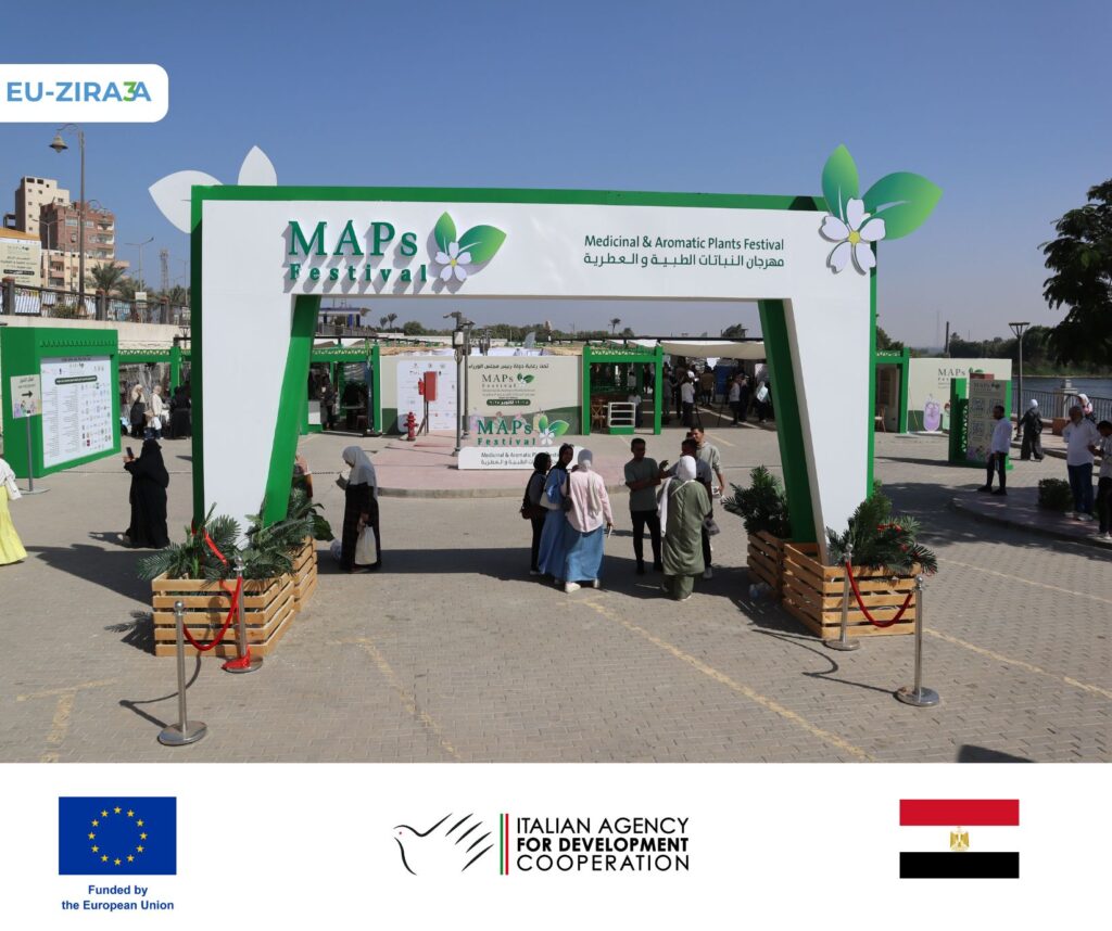 EU-ZIRA3A Programme participated in the Medicinal and Aromatic Plants (MAPs) Festival in Beni Suef, attracting more than 200 visitors to its booth. The two-day participation served as an engaging platform for farmers, students, associations, and government officials to learn more about EU-ZIRA3A’s ongoing efforts to strengthen the MAPs value chain including post-harvest practices and promote sustainable agricultural across Upper Egypt.